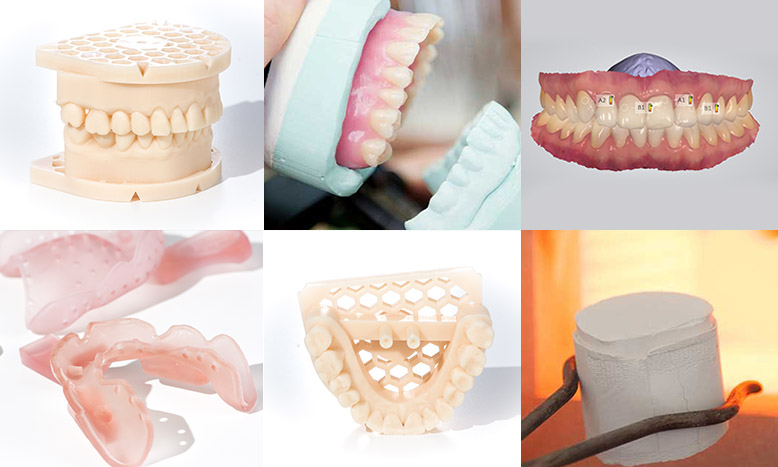 Schienen, Bohrschablonen, Guss-Designs, Modelle, Kronen und Brücken sowie individuelle Abdrucklöffel aus Kunststoff lassen sich blitzschnell mit SHERAeco-print drucken.
